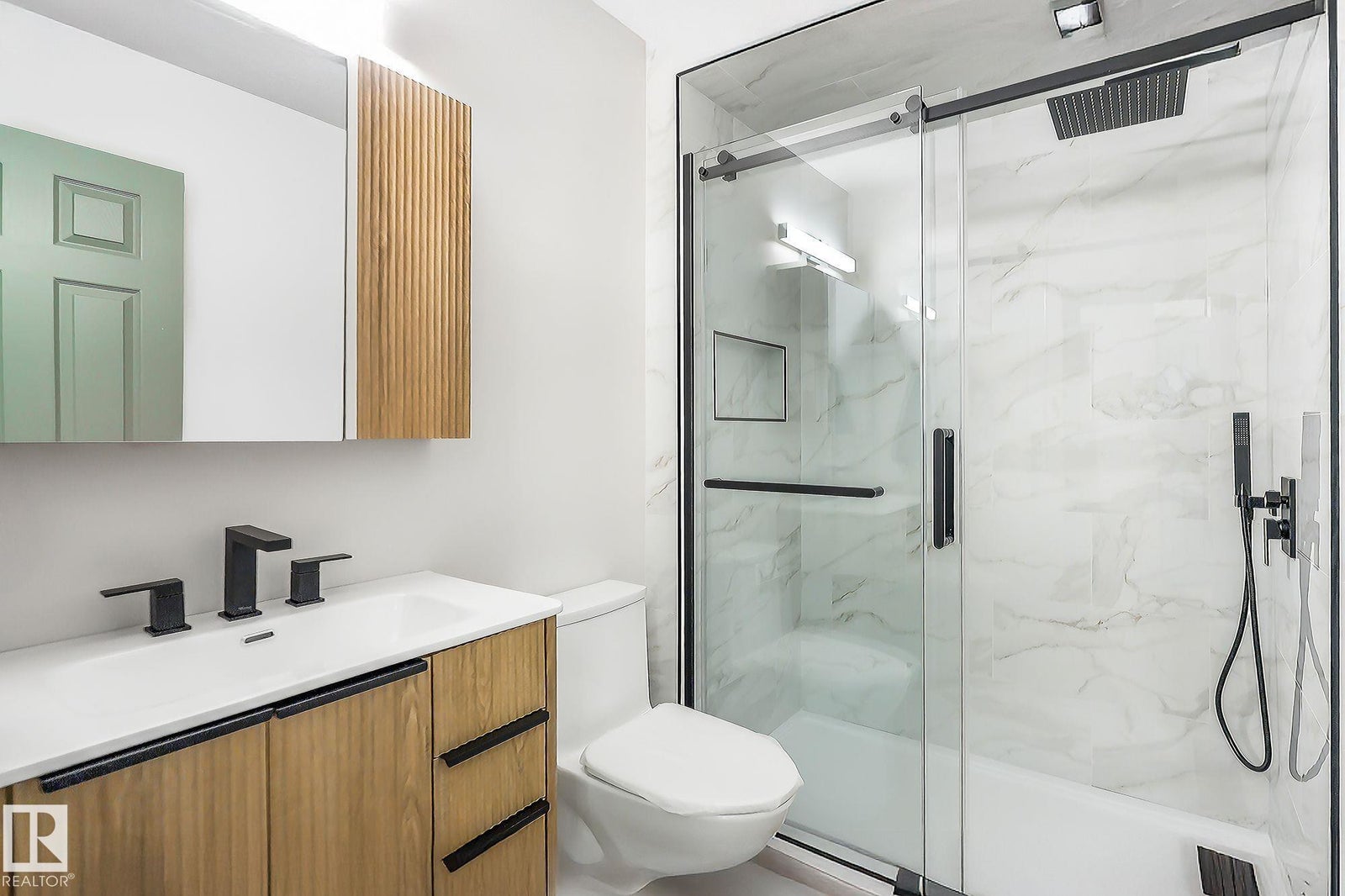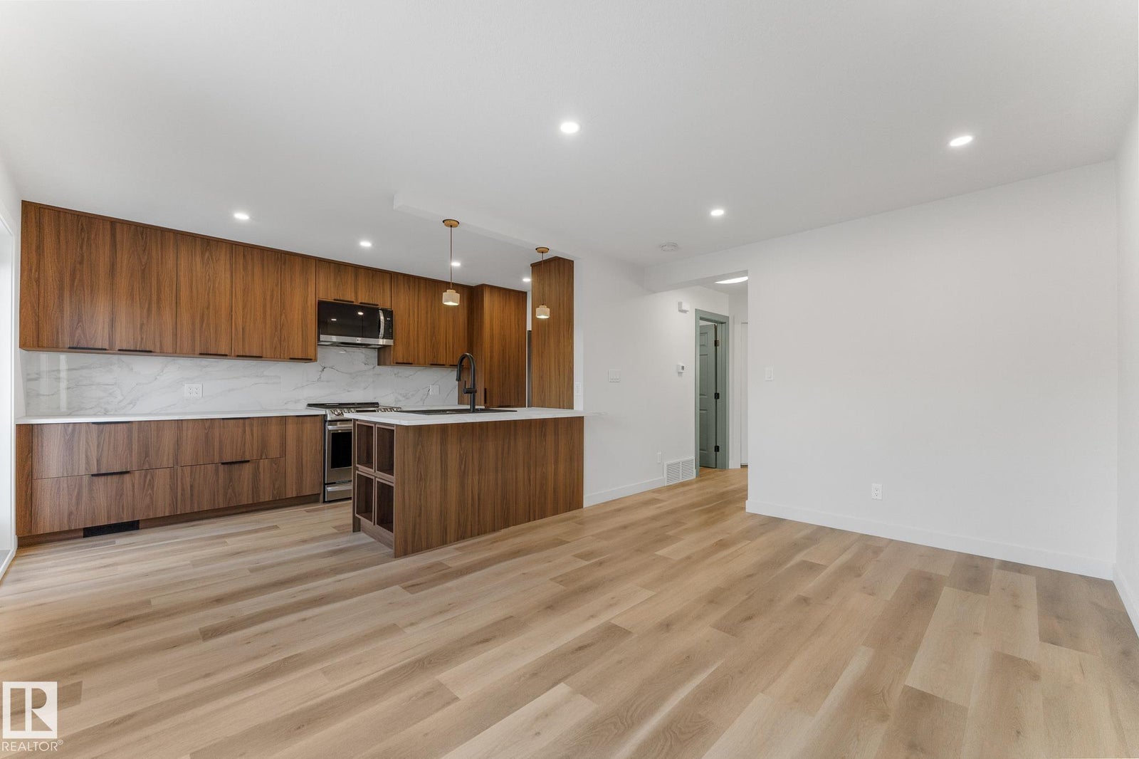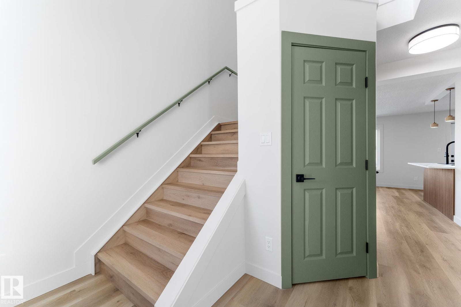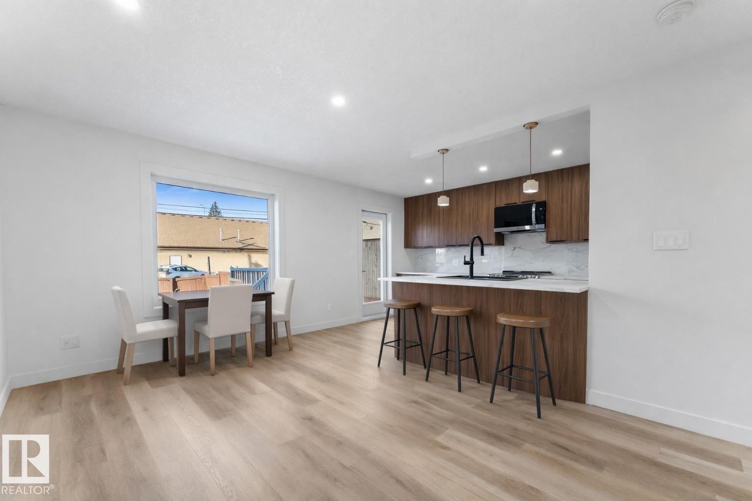 Welcome to 5106-47 Street, ideal for first-time buyers or young families, this bright, move-in-ready 1169 sq ft 2-storey half-duplex offers 3 bedrooms, 2 full baths, and a single attached garage. The main floor features a welcoming entry and an open-concept living area. The brand new kitchen includes warm cabinetry with built-ins, stainless appliances, light counters, and matching tile backsplash. Fresh paint, moss green trim and warm vinyl plank flooring runs throughout, and a fully updated bath with a tiled shower completes the level. Upstairs has 3 spacious bedrooms, including a bright primary, plus an updated 4-piece bath. The unfinished basement offers potential for a 4th bedroom or another living space with laundry. The large west facing backyard is great for gardening. Recent updates include trim, flooring, doors, kitchen cabinets, counters, backsplash, lighting, bathroom vanities and HWT. The back deck is wood with a concrete coating. Close to schools, shopping, and more.