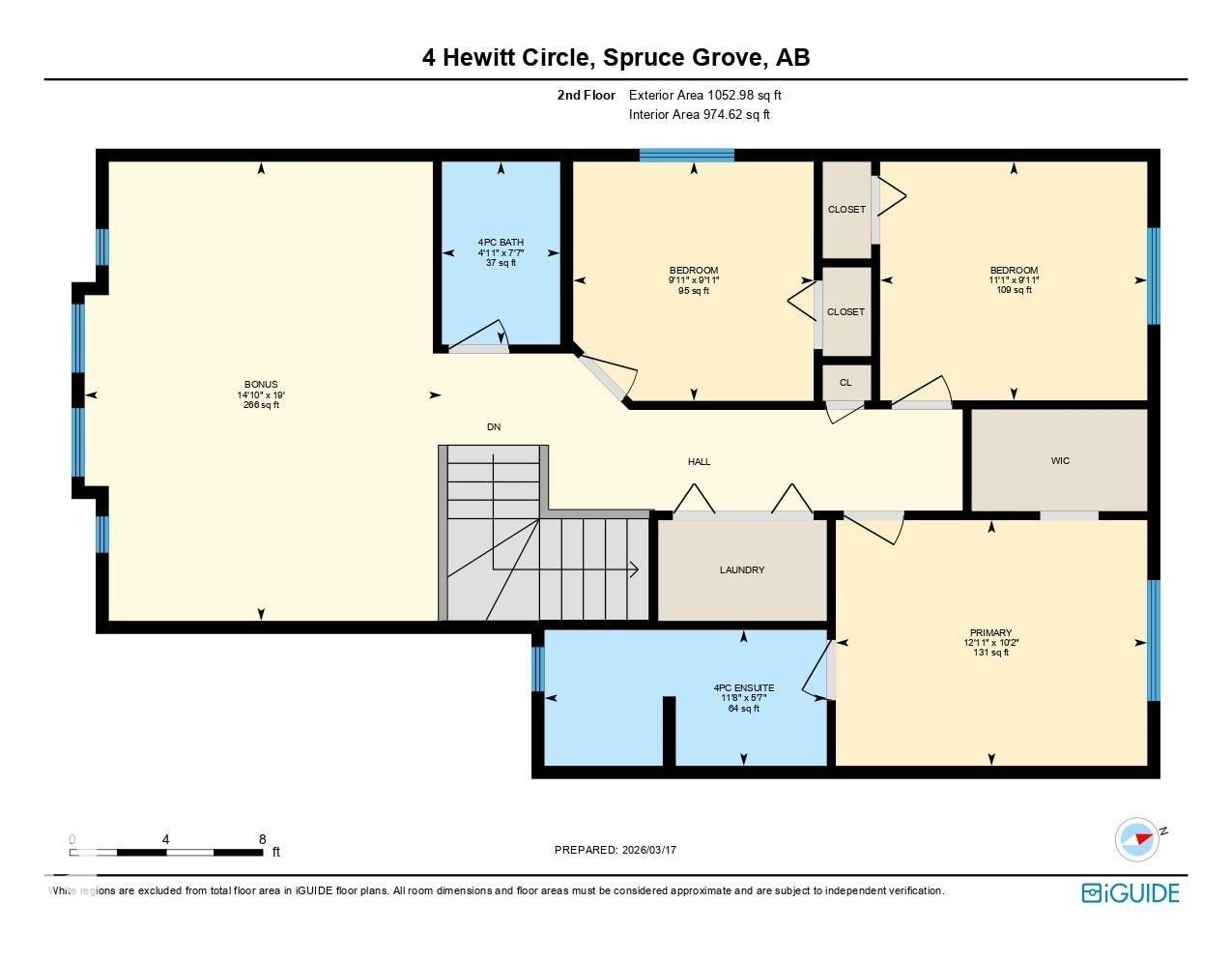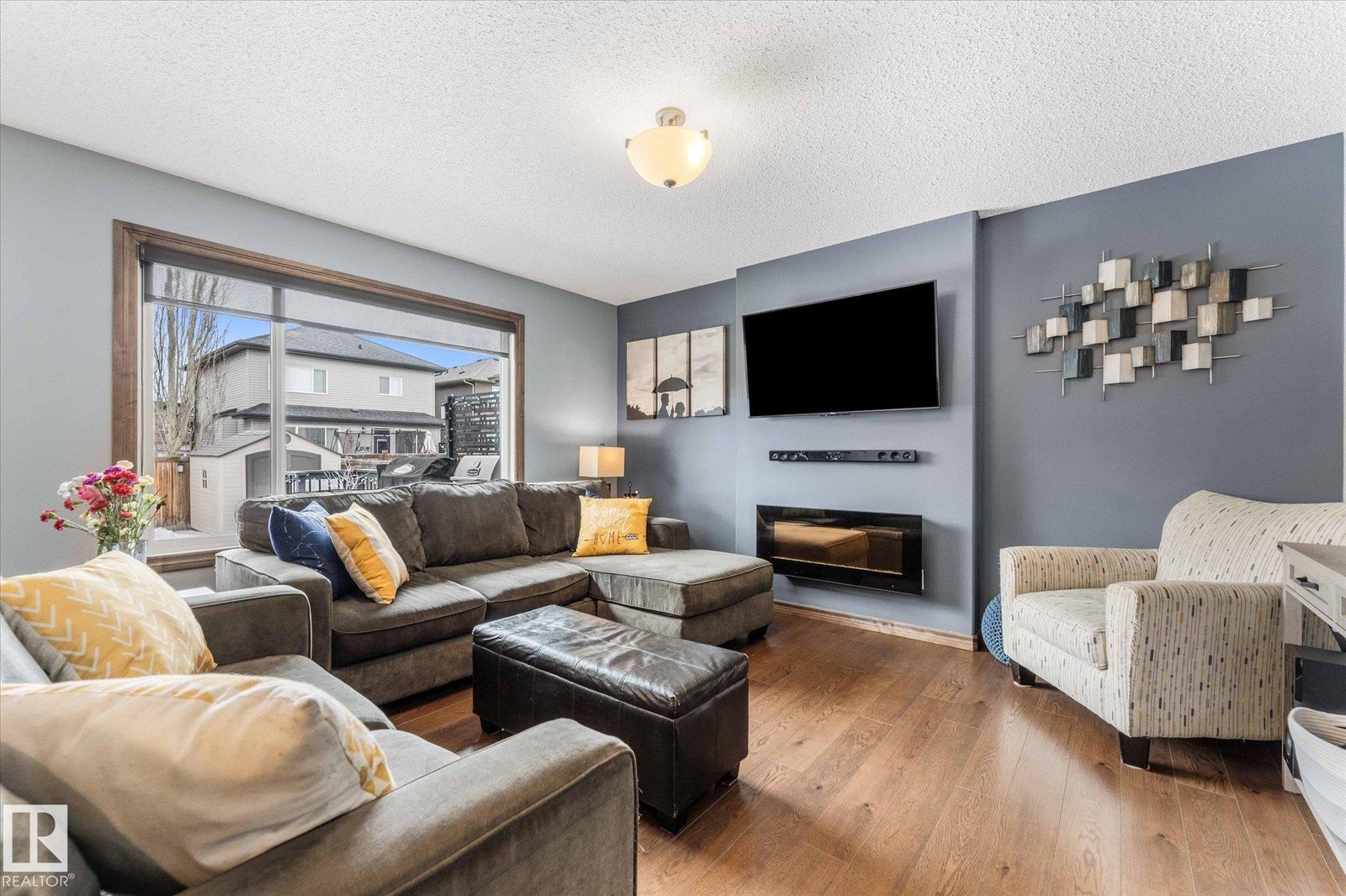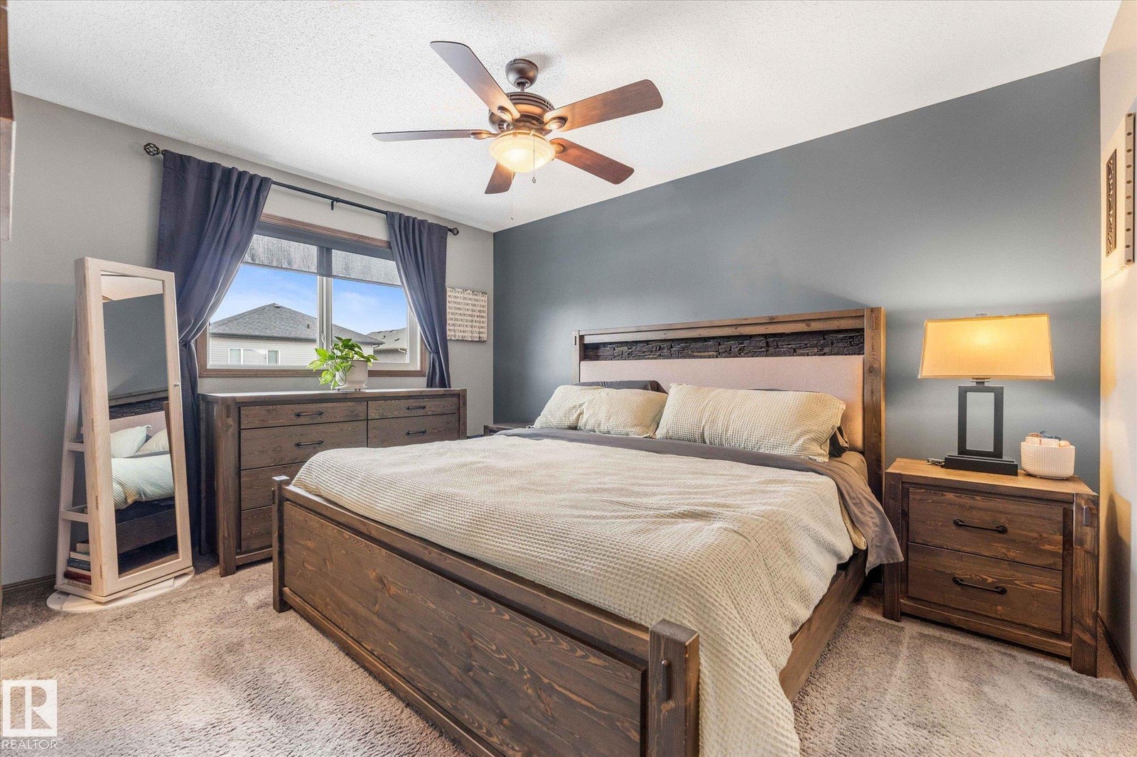 Welcome to 4 Hewitt Circle, located in the beautiful community of Harvest Ridge, on the west end of Spruce Grove. This well maintained 1819 sqft 2 storey is fully finished with 4 bedrooms, 3.5 bathrooms, a double attached garage and AC! On the main floor you will love the open concept floor plan with dark maple trim/doors and laminate flooring. The kitchen has dark cabinets, tile backsplash, SS appliance, a walk-through pantry, a large island & dining space large enough for a big table. The living room has large windows and an electric fireplace. Also on this level is a 2p bath and mudroom with access to the garage. Upstairs has a large bonus room, 3 bedrooms including the primary suite with walk-in closet and 4p ensuite. There is a main 4p bath and laundry on the upper floor as well. In the finished basement is the 4th bedroom, 3p bath with tiled shower, another family room with a wet bar. The north facing backyard is landscaped with a large deck and pergola.